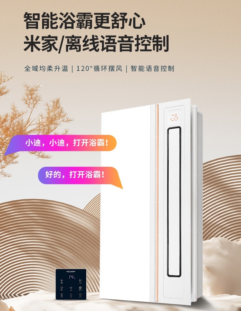 【智能語音控制,操作更便捷】 歐斯迪S1S智能浴霸支持米家和離線語音控制,讓您在享受沐浴的同時,通過簡單的語音指令就能輕松調(diào)節(jié)浴霸的各項功能。更智能的操作方式,讓您的沐浴過程更加舒心便捷。